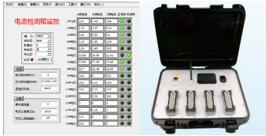 電流檢測箱是一款可以同時(shí)測多路三相用電設(shè)備的電流和相序數(shù)據(jù)便攜式設(shè)備,通過配帶的電流鉗夾,在不改變被測線路的條件下,單個(gè)電流測試箱最多可同時(shí)測量16個(gè)電機(jī)的三相電流和相序,測試數(shù)據(jù)通過MODBUS通信協(xié)議傳輸至電腦或PLC,支持二次開發(fā)。